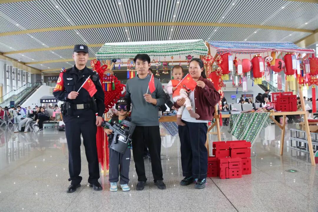 候車大廳內(nèi),紅色的國旗與中秋元素裝飾隨處可見。志愿者向旅客熱情遞上文旅宣傳冊,介紹紅河州特色景點(diǎn)與動車出行攻略。精彩的民族歌舞表演吸引了旅客紛紛駐足,他們舉起手機(jī)記錄下精彩瞬間。
