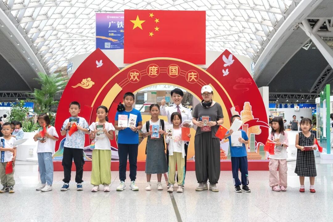 10月1日,廣州南站在三層候車廳組織開展歡度國慶暨“文明出行·書香廣南”快閃活動(dòng)。廣州南站職工初心藝術(shù)團(tuán)成員帶來快閃表演《坐著高鐵看中國》,并與旅客共唱《我和我的祖國》,共同祝福祖國繁榮昌盛!