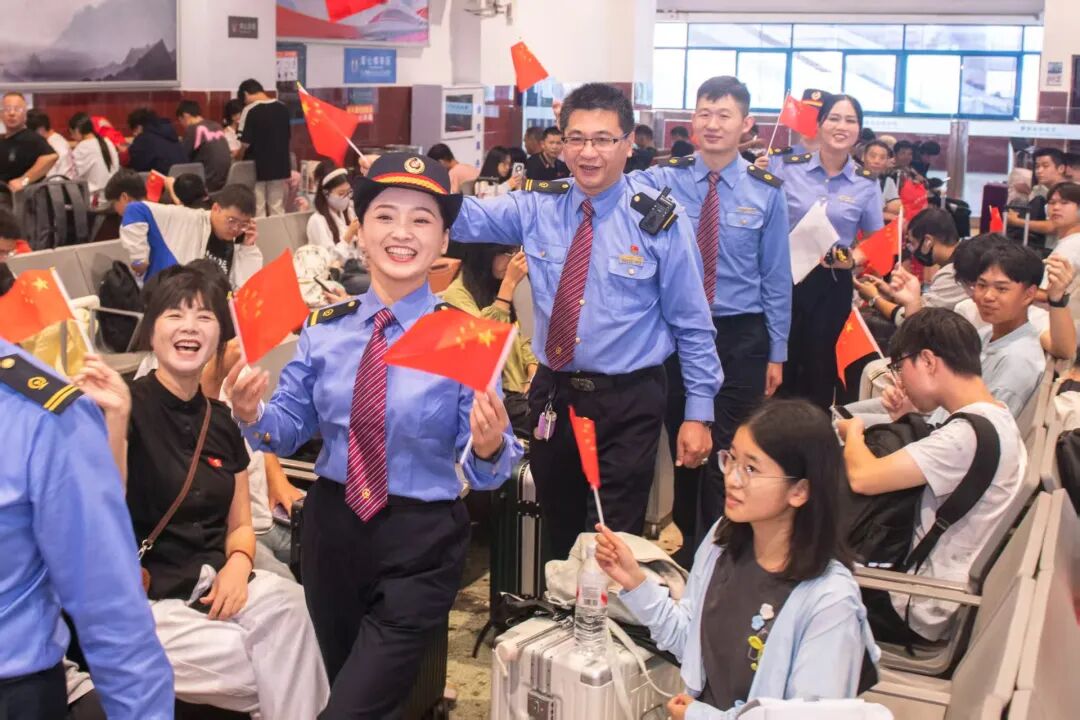 10月1日,廣州車務(wù)段惠州南站聯(lián)合站區(qū)兄弟單位開展“我的鐵路風(fēng)景”主題快閃活動(dòng)?,F(xiàn)場氣氛熱烈,工作人員與往來旅客合唱歌曲、歡聚一堂,以真摯的情感共同為祖國獻(xiàn)上生日祝福。