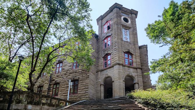 在工學(xué)院樓不遠(yuǎn)處就是“七七抗戰(zhàn)大禮堂”,它因紀(jì)念“七七事變”而得名。1937年,國立中央大學(xué)(今南京大學(xué) 東南大學(xué)等高校前身)西遷入渝。重慶大學(xué)拿出約200畝土地供中央大學(xué)使用,中央大學(xué)主持修建了大禮堂。