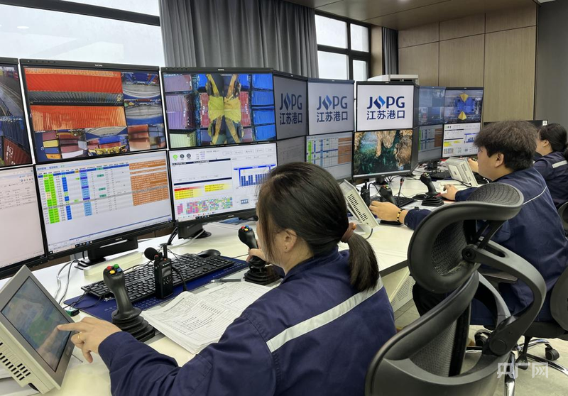 工作人員遠程操作集裝箱(央廣網(wǎng)記者 欒永勝 攝)