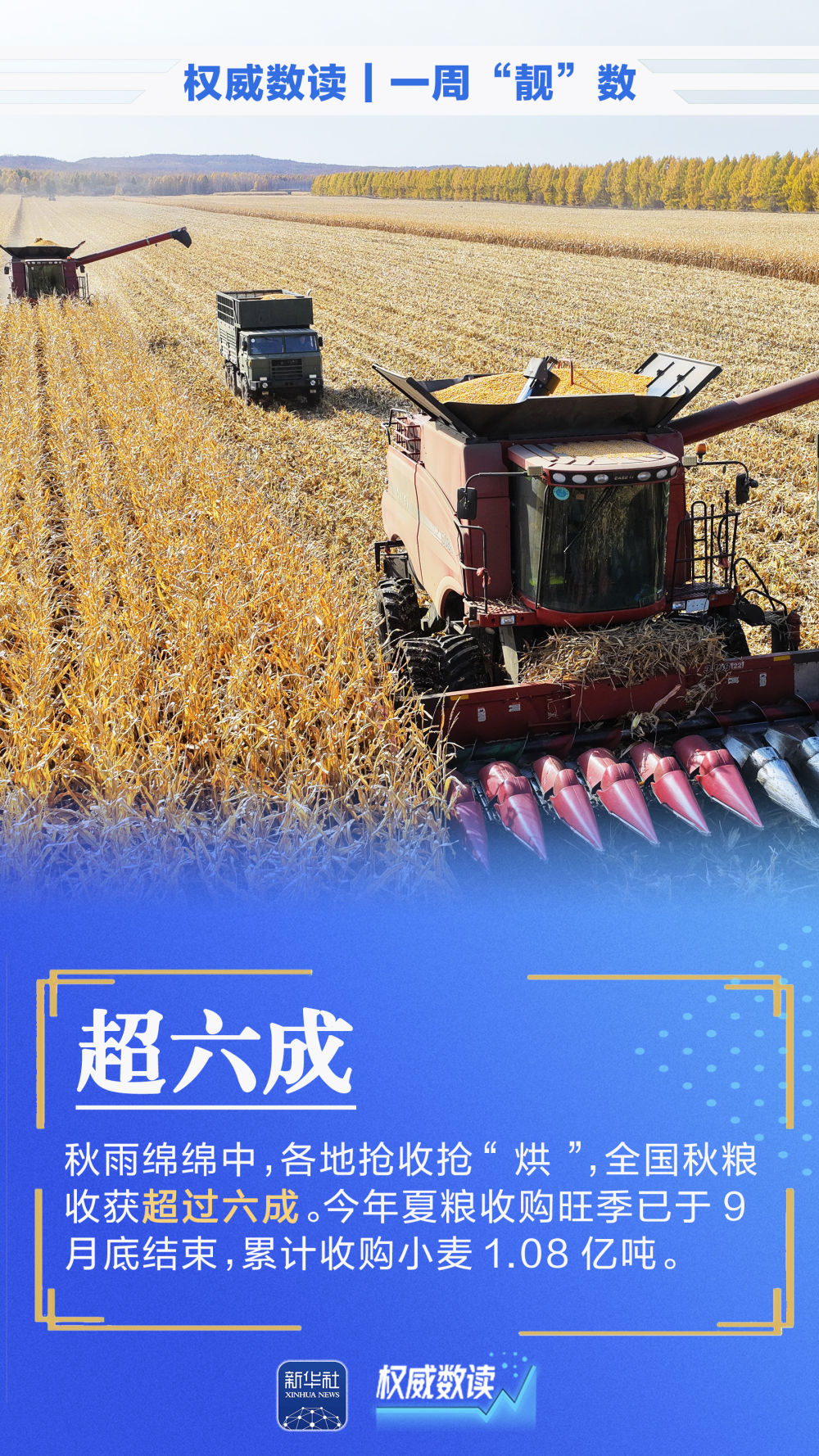 全國秋糧收獲超過六成;新能源汽車產(chǎn)銷量雙雙突破千萬輛;我國制造業(yè)增加值每年均超過30萬億元……本周這組數(shù)據(jù),最值得關注!