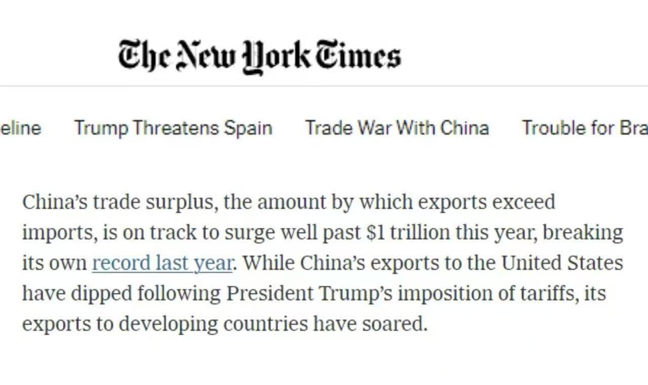 美國《紐約時報》的文章分析稱,強勁的出口和對新工廠的持續(xù)投資使中國經(jīng)濟在夏季保持穩(wěn)定增長。中國的出口投資以及用國產(chǎn)商品取代進口的政策繼續(xù)推動著經(jīng)濟增長。與去年同期相比,商品貿(mào)易順差在過去三個月中增加了12.4%。中國的貿(mào)易順差今年有望超過1萬億美元,主要得益于中國對發(fā)展中國家的出口激增。