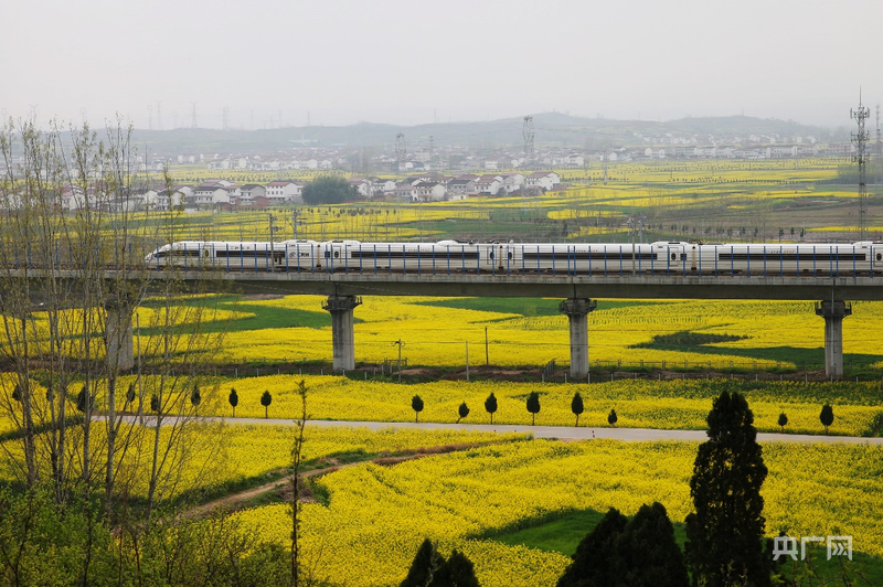 鋼鐵長龍?jiān)诨洊|大地上畫出優(yōu)美弧線,它勾勒出一條通向均衡發(fā)展、文化自信、民生幸福的未來之路。軌道延伸之處,山河煥然一新,城鄉(xiāng)共舞,這就是中國鐵路所承載的,最磅礴、最溫暖的時代之美。