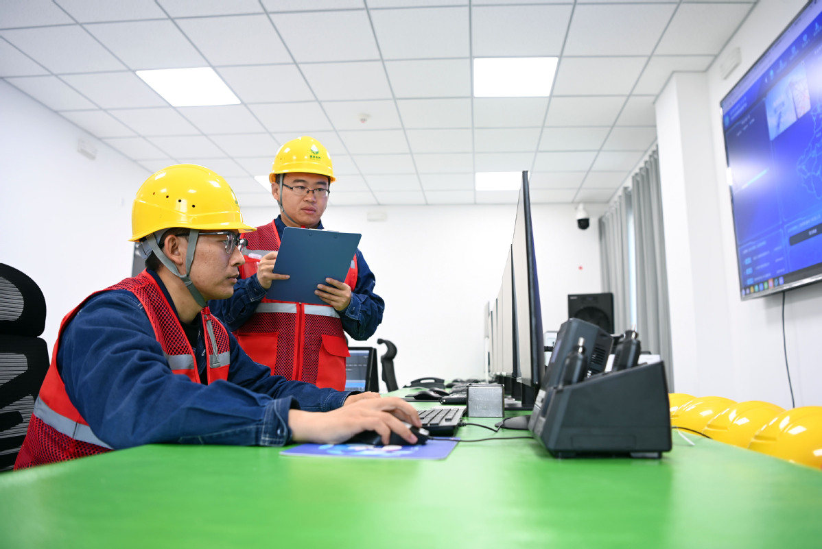 2025年10月19日,在且末750千伏變電站主控樓,運維人員執(zhí)行調度指令進行送電操作。(馬元攝)