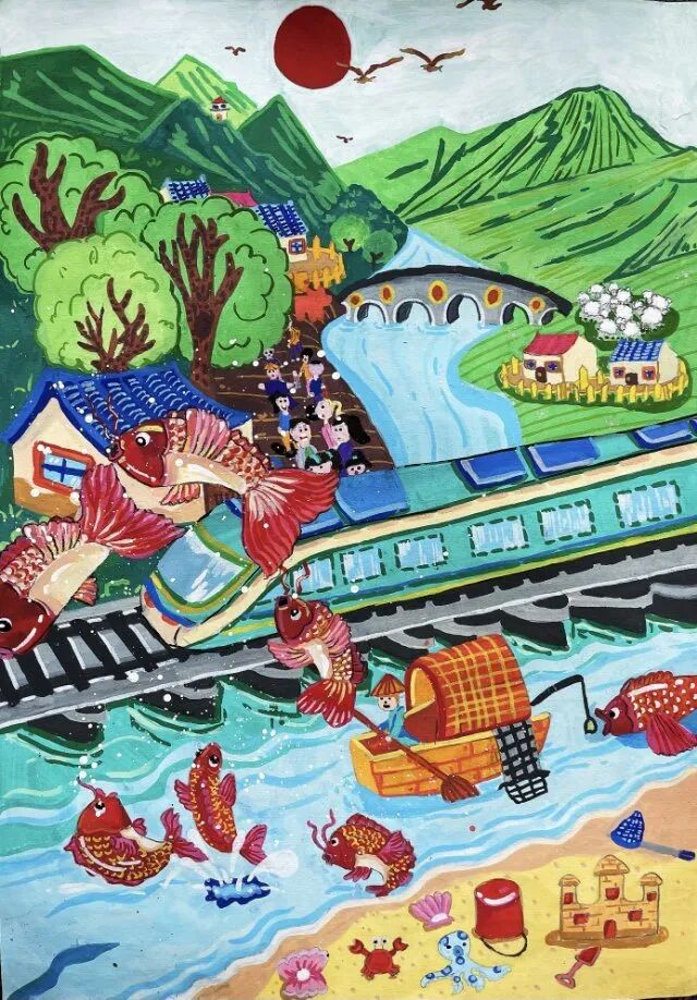 去年暑假,我和爸爸媽媽坐上普速列車去南京看望大爺爺。車窗外,九龍口濕地的蘆葦叢像綠色的波浪,成群的白鷺貼著水面掠過,偶爾還能看見漁民撐著小船在河道里穿梭。建湖特有的水鄉(xiāng)風(fēng)光漸漸后退,“哐當(dāng)哐當(dāng)”的車輪聲卻越來越清晰,仿佛是西塘河的流水聲化作了鋼軌上的旋律。鄰座的老爺爺笑著給我講起故事:“以前去南京,要先坐小船到碼頭,再轉(zhuǎn)汽車?,F(xiàn)在火車直接開到家門口,建湖和外面的世界更近啦!”他布滿皺紋的手輕輕摸著車窗,眼睛里閃著光。
