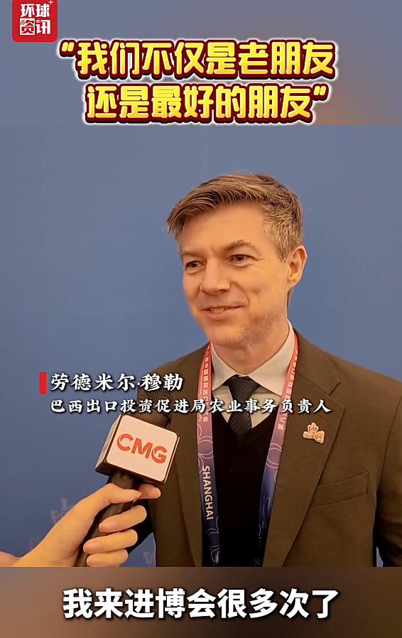 巴西出口投資促進(jìn)局農(nóng)業(yè)事務(wù)負(fù)責(zé)人勞德米爾·穆勒接受總臺環(huán)球資訊廣播記者采訪時(shí)表示,巴西每年都積極參與進(jìn)博會,不僅是進(jìn)博會的老朋友,更是最好的朋友。