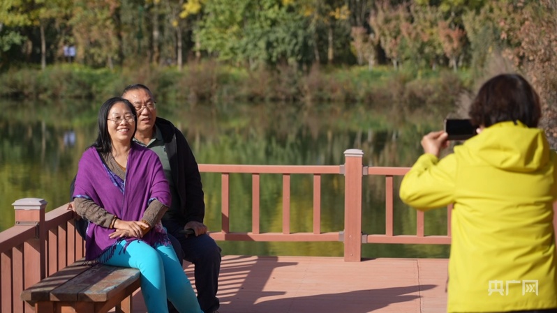 游客在濕地公園拍照留念 (央廣網(wǎng)記者丁安 攝)
