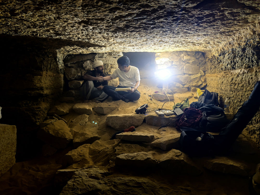 “沙漠炎熱,墓室情況復雜,不時發(fā)生坍塌,但我們始終堅守在這里?!毖嬖V記者,“有一次在墓室掃描文物時,頂上的沙層突然塌下來,我差點成了現(xiàn)代‘木乃伊’?!睖囟扔袝r突破50攝氏度、狹窄墓室內容易缺氧、隊員必須匍匐進入,中國考古團隊在這樣的艱苦條件下堅持工作。