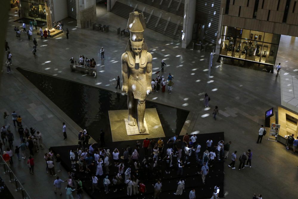 高達11米的拉美西斯二世巨像,擁有4500多年歷史的胡夫太陽船,古埃及法老圖坦卡蒙的黃金面具……大埃及博物館4日正式開館當天一早,中國游客王治國就趕到位于埃及首都開羅西南吉薩金字塔附近的博物館參觀。展廳內人頭攢動,首日參觀人數(shù)就達到約1.8萬?!斑@是埃及的一張文化名片。”他說,“如今中埃之間不僅旅游、商貿往來熱絡,文化交流活動也是豐富多彩。”