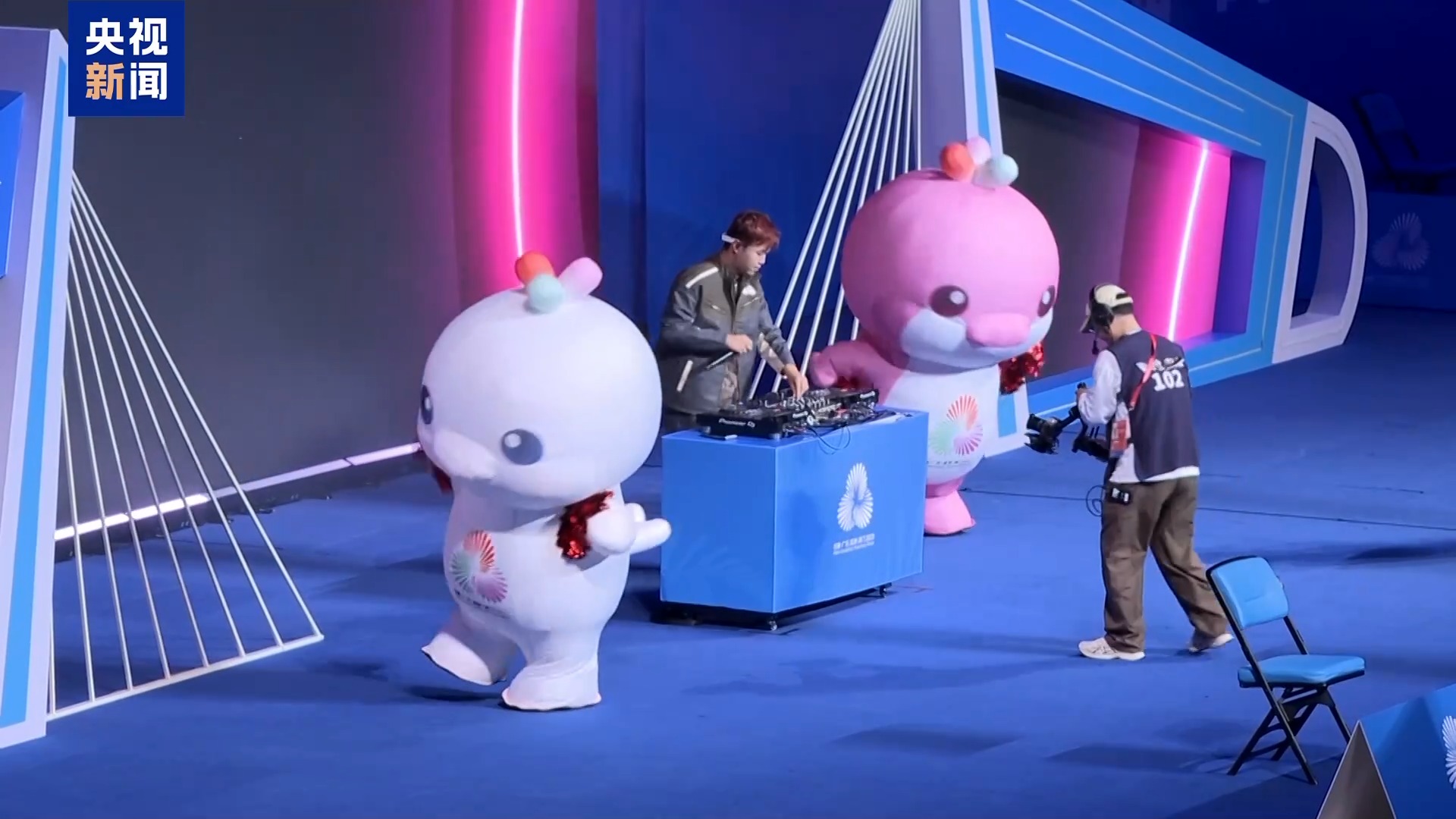 除了開(kāi)幕式上的布偶吉祥物,體育館里的充氣吉祥物扮演者,則是各個(gè)場(chǎng)館的大學(xué)生志愿者。相比于厚重的毛絨材質(zhì)玩偶服,志愿者的充氣服裝更顯復(fù)雜。不過(guò),觀(guān)眾不太能看出其中的差別。