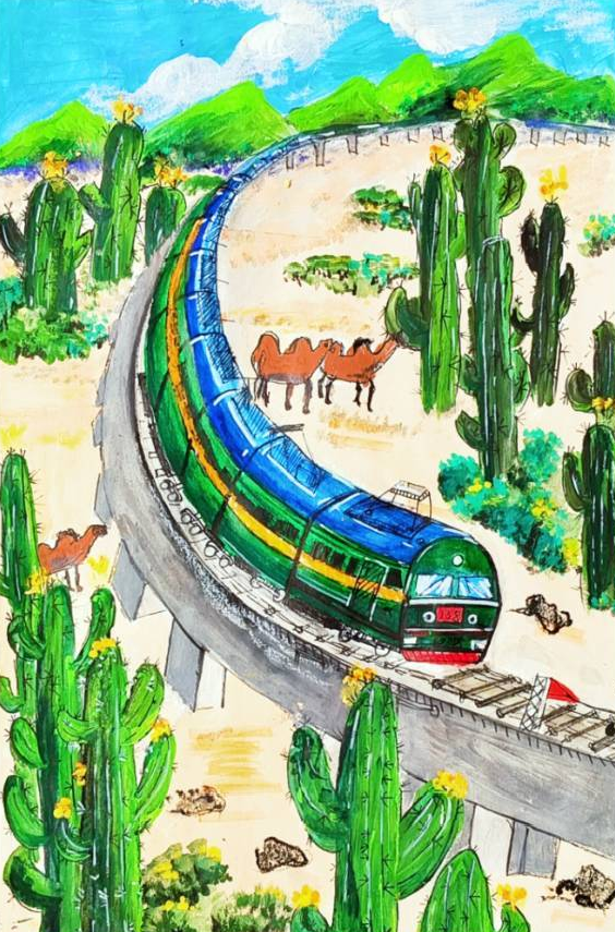 回家的路上,我翻著爸爸收藏的老照片:黑白照片里是詹天佑設(shè)計(jì)的京張鐵路;彩色照片中,嶄新的京張高鐵穿越居庸關(guān)隧道,智能列車自動(dòng)駕駛,外國人都豎起大拇指。爺爺常說“鐵路是國家的脊梁”,如今,這脊梁挺得筆直,載著14億人的夢(mèng)想飛馳。