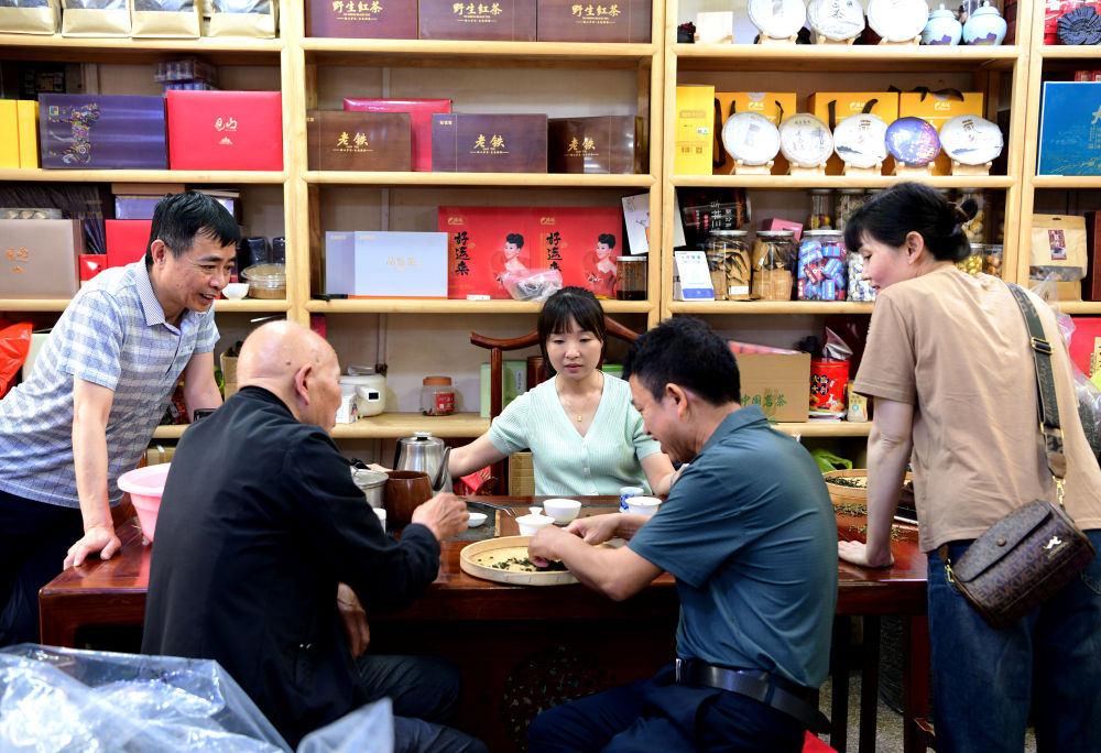 在福建省安溪縣的中國茶都茶葉市場,茶商在市場店鋪里揀選鐵觀音毛茶(2024年5月8日攝)。新華社記者 魏培全 攝