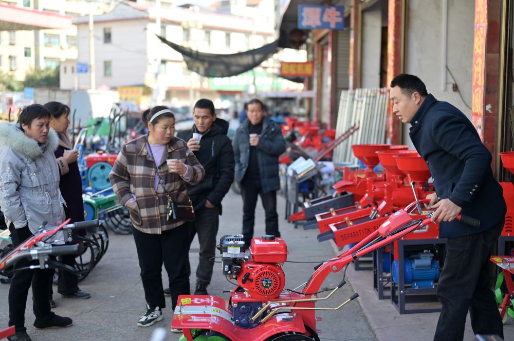 2025年2月9日,在湖南省婁底市雙峰縣農(nóng)機(jī)市場,農(nóng)戶在選購小農(nóng)機(jī)。新華社發(fā)(李建新 攝)