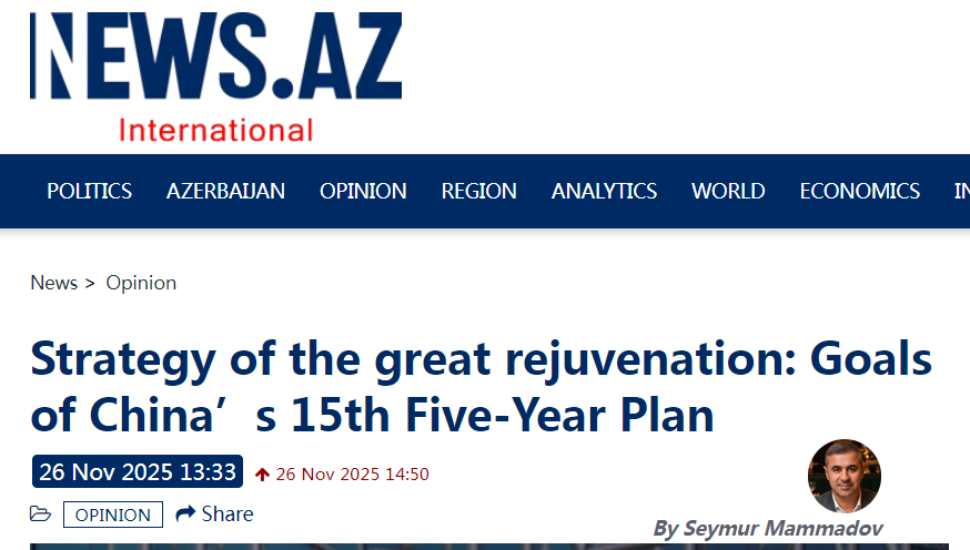 近日,國際專家俱樂部EurAsiaAz主任塞繆爾·馬邁多夫在阿塞拜疆“News.Az”國際新聞網(wǎng)發(fā)表文章稱,在全球進(jìn)入“戰(zhàn)略不確定時(shí)代”的背景下,中國謀定而后動(dòng),以罕見的長遠(yuǎn)戰(zhàn)略眼光和堅(jiān)定的執(zhí)行力,給出了截然不同的答案。