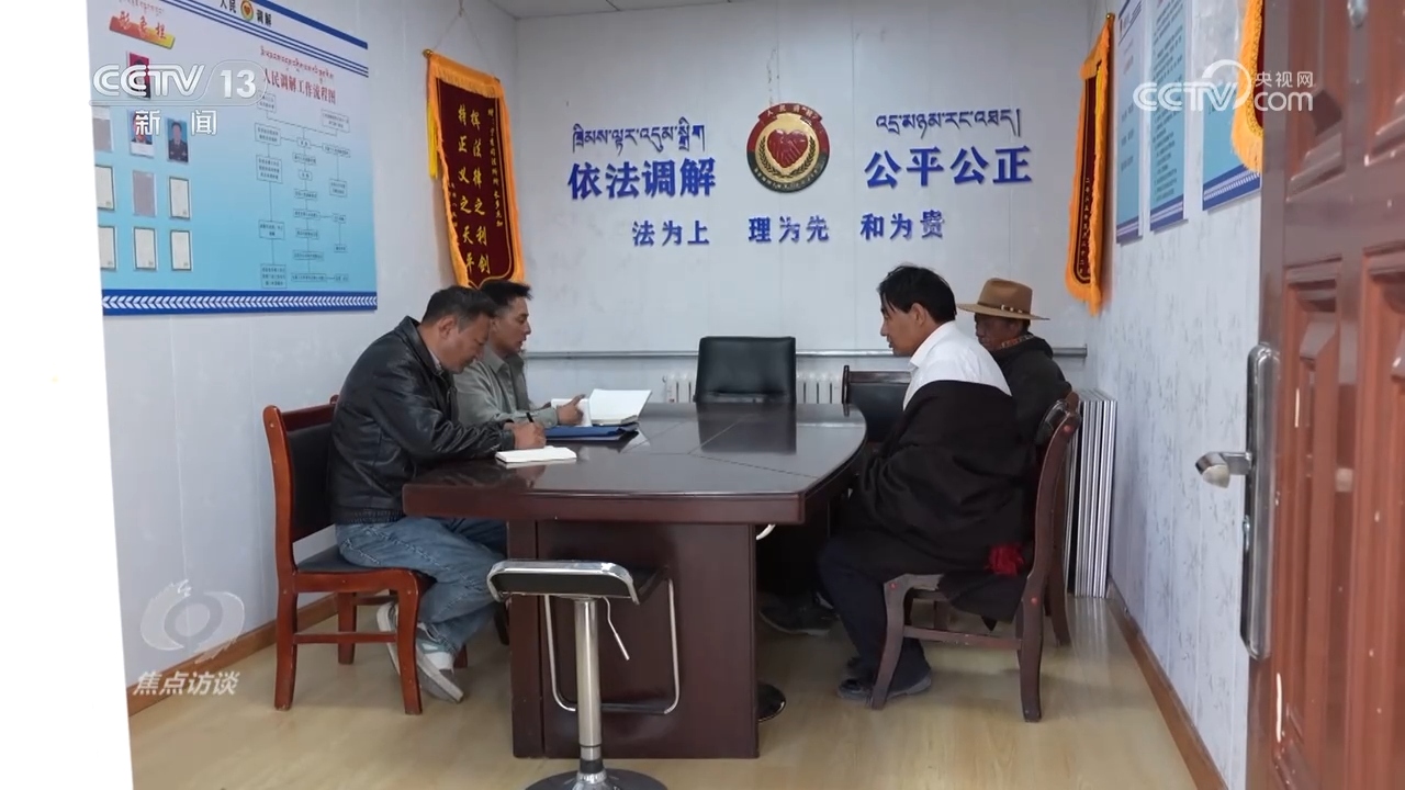在青海澤庫(kù)縣寧秀司法所的調(diào)解室里,“法律明白人”索南才旦正在調(diào)解兩名牧民的牛羊買(mǎi)賣(mài)合同糾紛。
