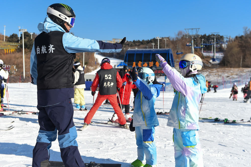 12月3日,在長春市天定山滑雪場,學生們跟隨教練學習滑雪。新華社記者 張楠 攝