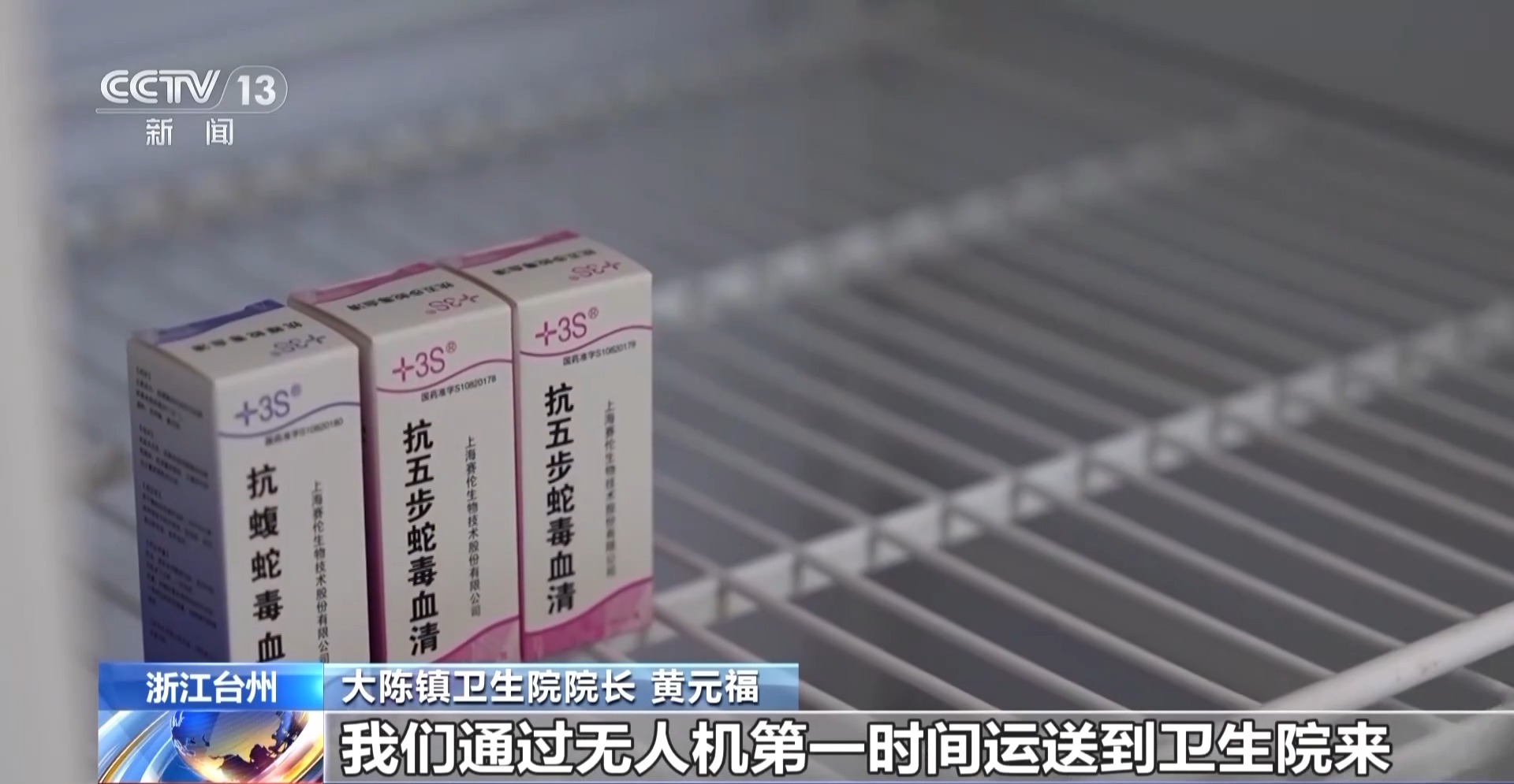 大陳鎮(zhèn)衛(wèi)生院院長 黃元福:像這些蛇抗毒血清,還有一些疫苗,我們通過無人機第一時間運送到衛(wèi)生院來,為緊急病人的救治爭取了寶貴時間。