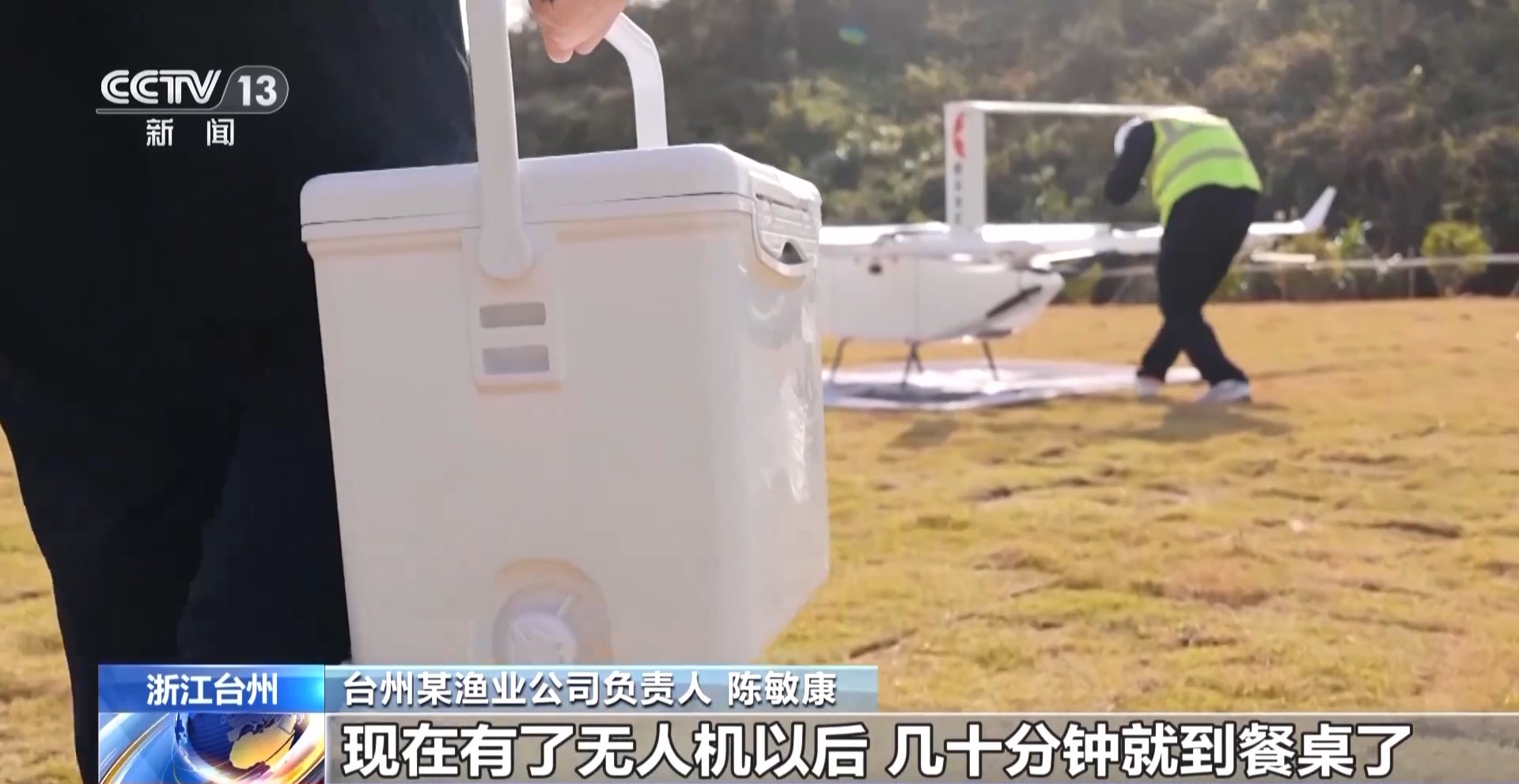 臺州某漁業(yè)公司負(fù)責(zé)人 陳敏康:以前我們魚捕上去運到了市區(qū)都要好幾個小時,現(xiàn)在有了無人機以后,幾十分鐘就到餐桌了?,F(xiàn)在無人機的運輸量比較小,但我們來看這個前景是比較好的,這也為我們島上的漁民開拓了致富的新路子。