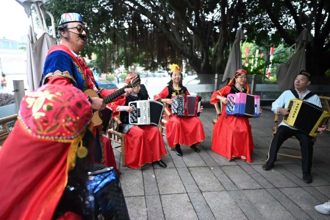 如今的安公社區(qū),民族文化活動(dòng)蔚然成風(fēng)。每到傍晚,廣場(chǎng)上總能聽見歌聲、看到舞步。劉翁姆說(shuō):“我們合唱團(tuán)沒(méi)收過(guò)費(fèi),老師們都是自愿來(lái)的。以前坐公交不敢坐、路又窄又臟,現(xiàn)在環(huán)境太好了,社區(qū)干部天天在小區(qū)轉(zhuǎn),有事馬上解決?!?/p>