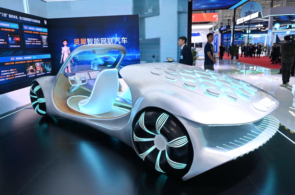 2025年4月29日,在第八屆數(shù)字中國(guó)建設(shè)峰會(huì)現(xiàn)場(chǎng)體驗(yàn)區(qū)拍攝的靈犀智能網(wǎng)聯(lián)汽車(chē)。新華社記者 林善傳 攝