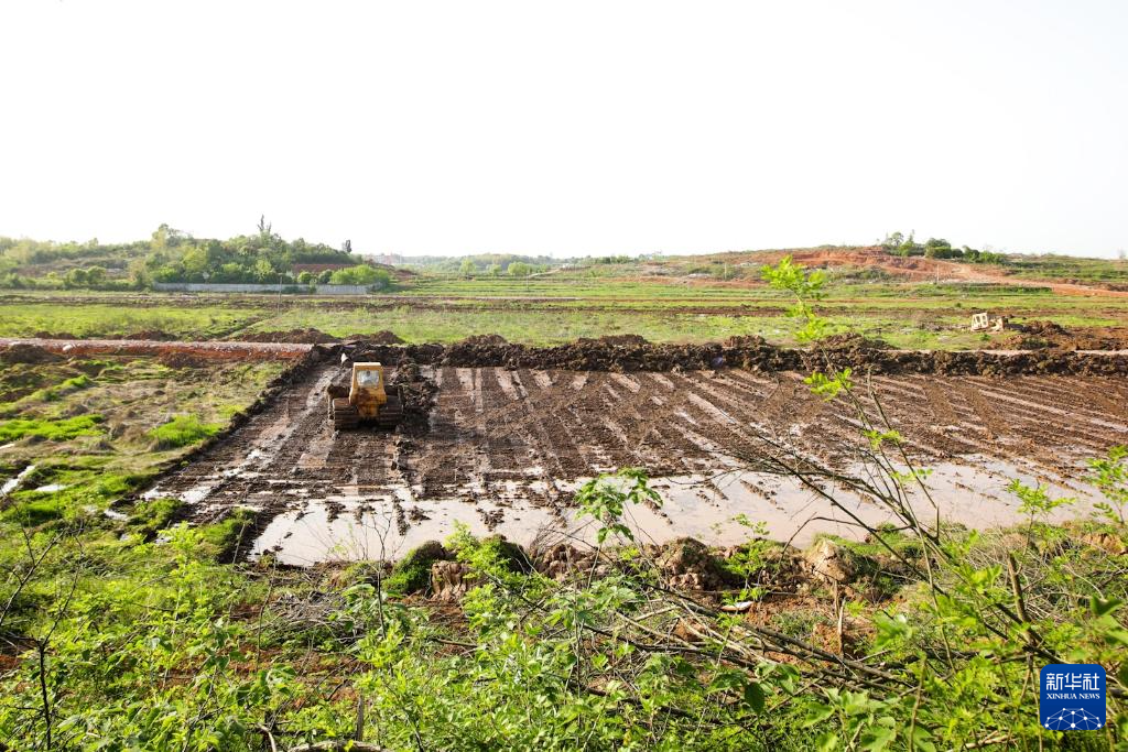 2022年4月7日,長沙機(jī)場改擴(kuò)建項(xiàng)目被占耕地在進(jìn)行耕作層剝離作業(yè)。新華社發(fā)(鄒禮卿 攝)