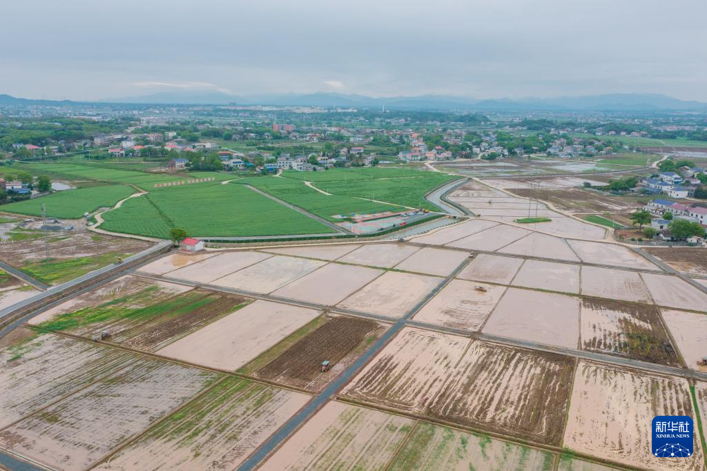 這是2024年6月19日在瀏陽市永安鎮(zhèn)豐裕村拍攝的稻田(無人機(jī)照片)。新華社發(fā)