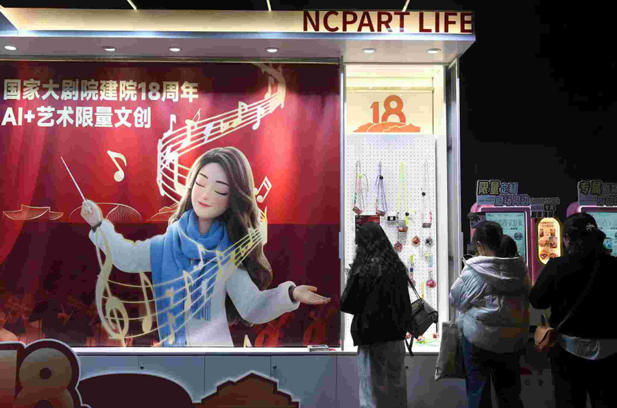 圖為觀眾在國(guó)家大劇院選購(gòu)文創(chuàng)產(chǎn)品。新華社記者 羅曉光 攝