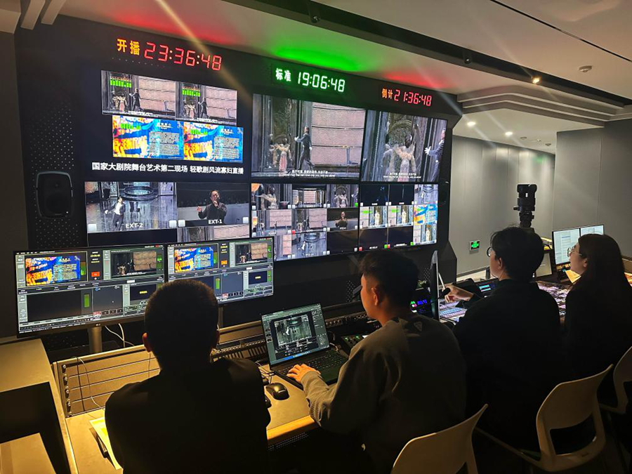 圖為國(guó)家大劇院舞臺(tái)藝術(shù)“第二現(xiàn)場(chǎng)”直播導(dǎo)播間。新華社記者 楊淑君 攝