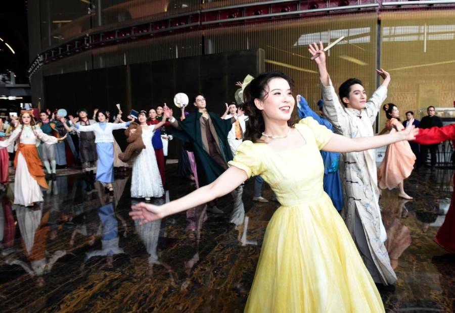 圖為演員在國(guó)家大劇院公共空間與觀眾互動(dòng)。新華社記者 羅曉光 攝