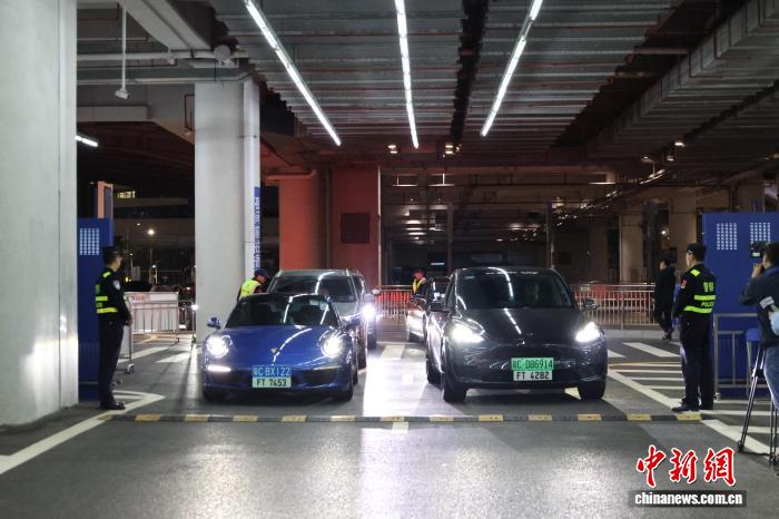 12月23日凌晨,首批“粵車南下”車輛在港珠澳大橋珠海公路口岸等待通關(guān)出境前往香港市區(qū)。當日,“粵車南下”入境香港市區(qū)正式實施,大灣區(qū)互聯(lián)互通再進一步?!≈行律绨l(fā) 黎釗德 攝