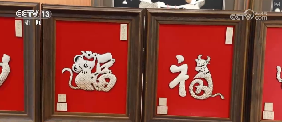 與江南魚燈相映成趣的,是扎根黑土地的吉林省級(jí)非遺——查干湖魚皮制作技藝。在“禮遇吉林”非遺體驗(yàn)店,魚皮經(jīng)洗料、鞣制、剪刻、拼貼等工序,變身充滿民族風(fēng)情的精美藝術(shù)品。