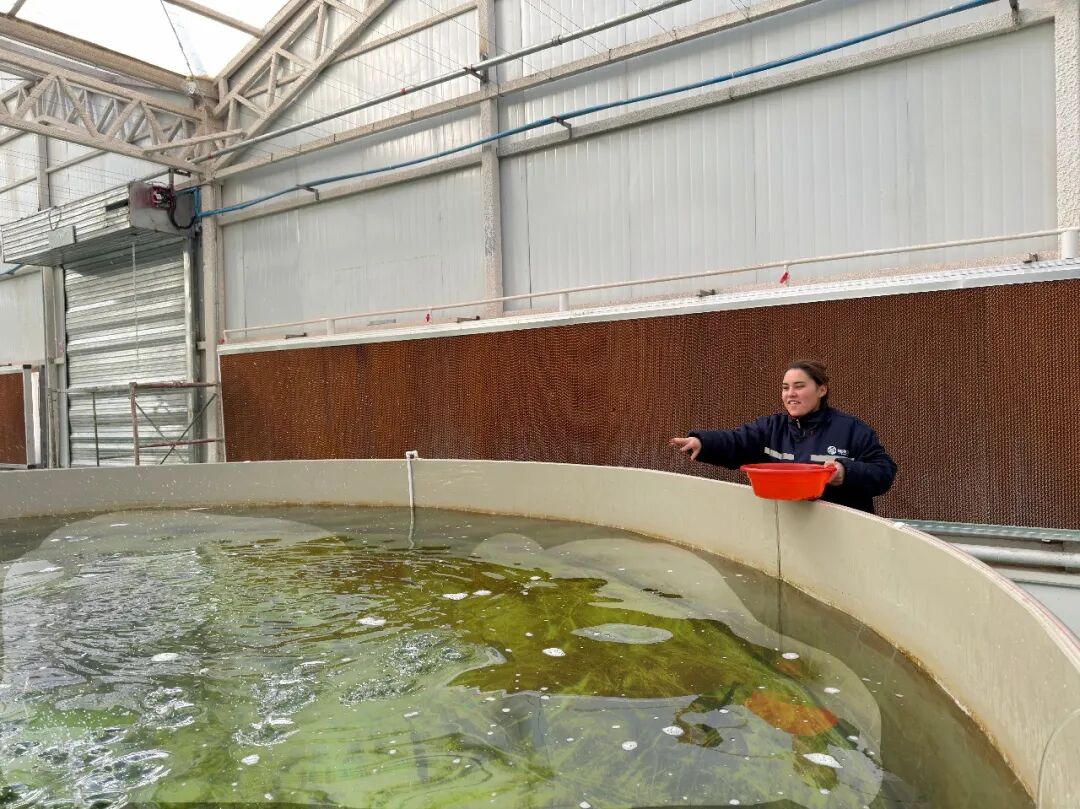 新疆疆漁兒農(nóng)業(yè)科技有限公司員工正在喂養(yǎng)餌料。喀什地區(qū)融媒體中心 記者李霖 攝