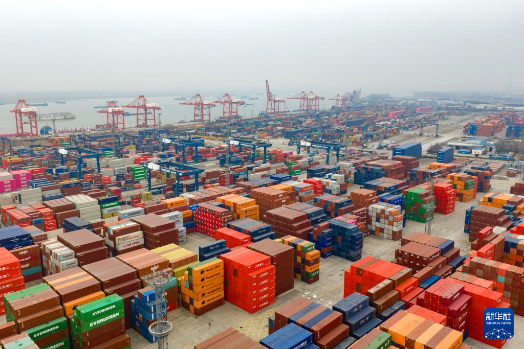 1月18日拍攝的江蘇省港口集團(tuán)南京港龍?zhí)都b箱碼頭(無人機(jī)照片)。新華社發(fā)(楊素平攝)