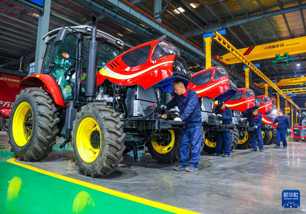 1月19日,在江蘇省江都高新技術(shù)產(chǎn)業(yè)開發(fā)區(qū)的金世紀(jì)(江蘇)智能科技有限公司,工人對(duì)即將出售的拖拉機(jī)進(jìn)行檢查。新華社發(fā)(任飛攝)