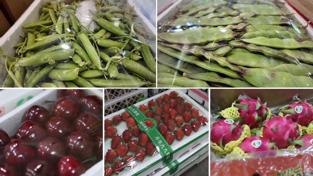 盤錦的堿地西紅柿、河蟹、大米,丹東東港的藍莓、草莓,鞍山的南果梨,從這里裝車發(fā)運,最快在24小時之內就可以抵達南方的餐桌。