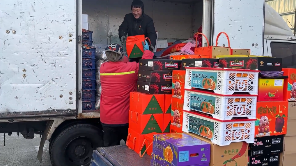 春節(jié)將至,年節(jié)消費市場一片火熱。位于遼寧省盤錦市的東北新發(fā)地農產品供應鏈中心,有從南方發(fā)運過來的新鮮果蔬,還有即將發(fā)往全國各地的東北特產,進進出出的年貨,讓南北的年味在這里相遇、交融。