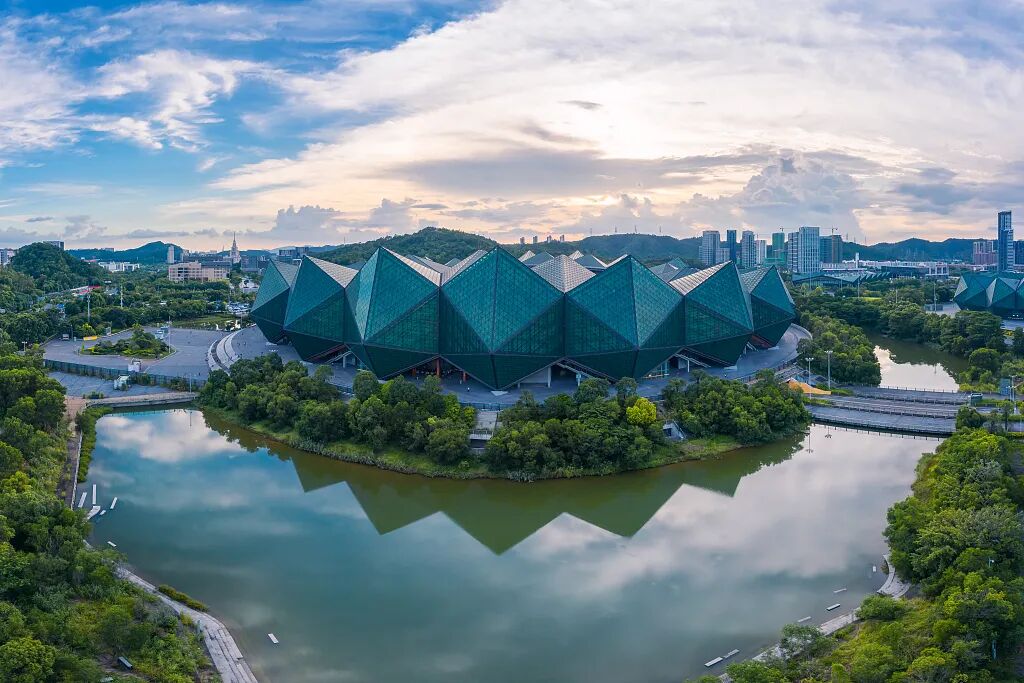 作為深圳文體地標——深圳大運中心體育館極具現(xiàn)代建筑美學,成為電影“城市森林”畫面的重要底色。這座以“水晶石”為造型的建筑,線條流暢、質感硬核。