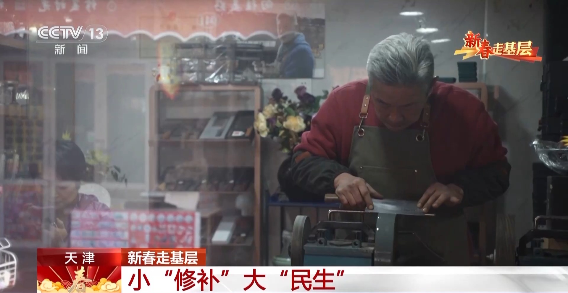 早上9點,天津市河北區(qū)王串場街道的“修補”巷里,賣東西的吆喝聲、街坊的嘮嗑聲此起彼伏。臨近春節(jié),附近居民的修補需求明顯增多,修鞋、磨刀、縫補衣物……一家家不起眼的小鋪里,來來往往的市民絡(luò)繹不絕。