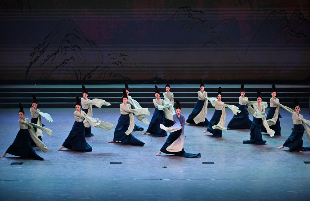 2023年7月29日,演員在聯(lián)歡會(huì)現(xiàn)場(chǎng)表演《只此青綠》。當(dāng)晚,“青春 In Time”第31屆世界大學(xué)生夏季運(yùn)動(dòng)會(huì)運(yùn)動(dòng)員聯(lián)歡會(huì)在成都大運(yùn)村藝術(shù)中心大劇場(chǎng)舉辦。聯(lián)歡會(huì)以魔術(shù)、舞蹈、演唱等藝術(shù)形式為橋梁,推動(dòng)中外青年藝術(shù)家、運(yùn)動(dòng)員、大學(xué)生及志愿者代表互動(dòng)交流,營(yíng)造歡樂(lè)、友愛(ài)的大運(yùn)氛圍。