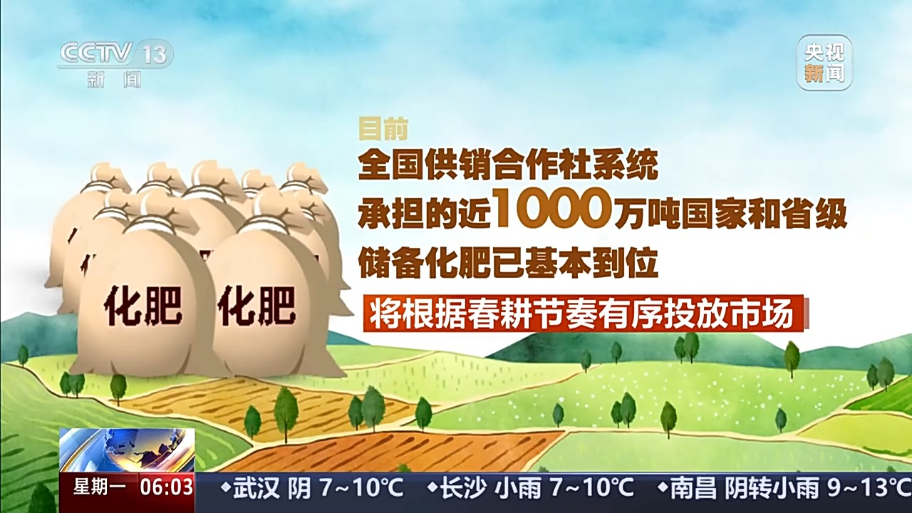 目前,全國供銷合作社系統(tǒng)承擔(dān)的近1000萬噸國家和省級儲備化肥已基本到位,將根據(jù)春耕節(jié)奏有序投放市場。