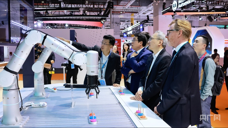 第八屆進(jìn)博會(huì)上,科技企業(yè)展商在向觀眾介紹產(chǎn)品(央廣網(wǎng)記者 何智康 攝)