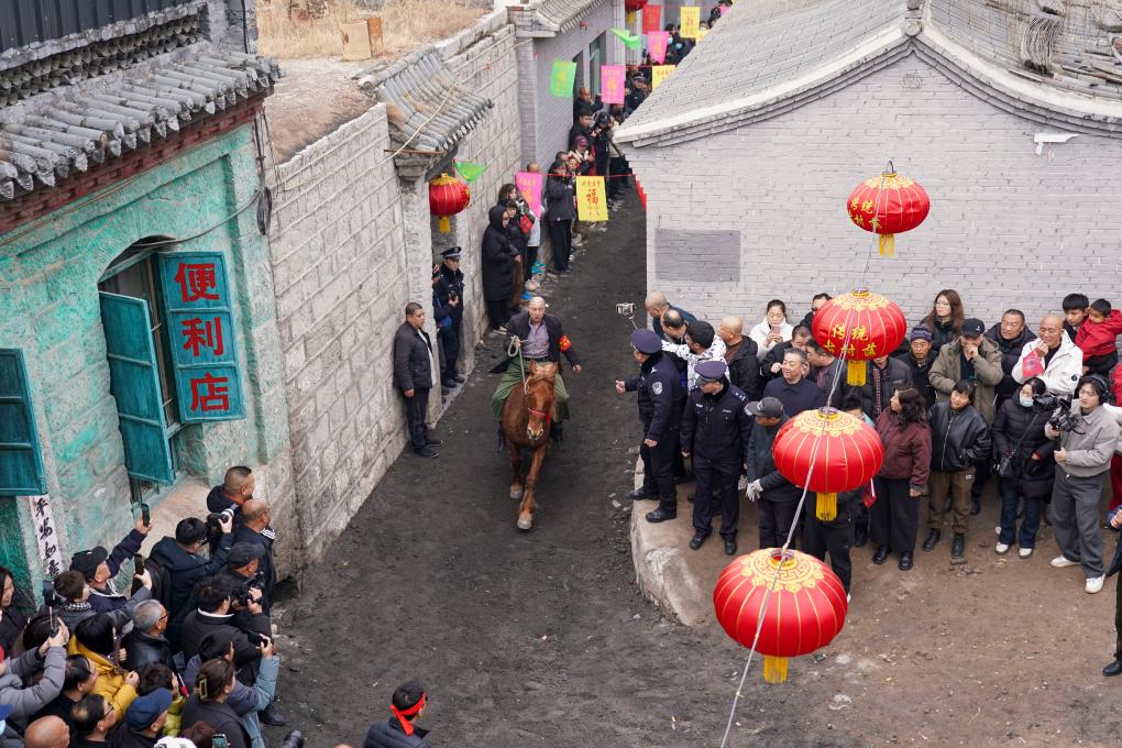 3月4日,農(nóng)歷正月十六,這個距離娘子關僅6公里的小山村,迎來了一年中最熱鬧的時刻,村中那條長約400米、寬不足4米的青石古巷上,里三層外三層擠滿了人。沿路民房的臺階上、門檻上,甚至屋頂上,都早已站上了不請自來的看客,主人家卻也毫不在意:“今天這個大日子,大家一起熱鬧熱鬧!”