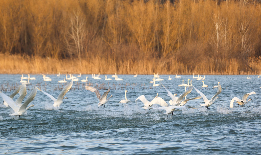 每年11月下旬至次年3月,大天鵝都會(huì)到位于黃河中游的三門峽黃河濕地越冬。據(jù)三門峽黃河天鵝湖濕地保護(hù)中心統(tǒng)計(jì),天鵝數(shù)量從20世紀(jì)90年代的幾十只,增至如今的1.6萬余只。