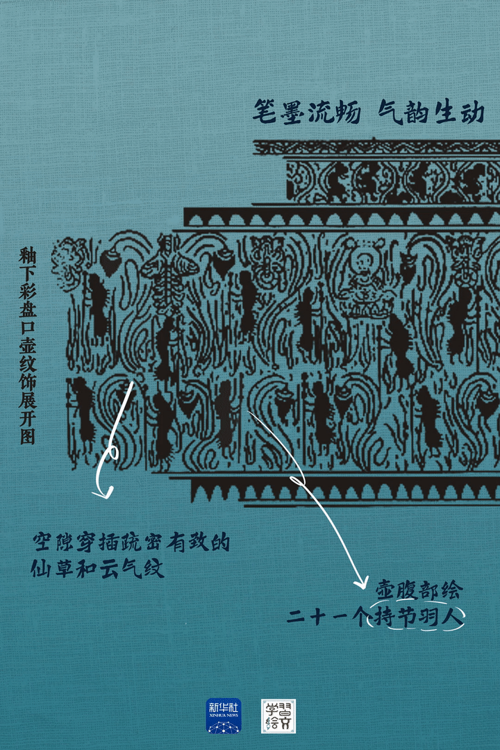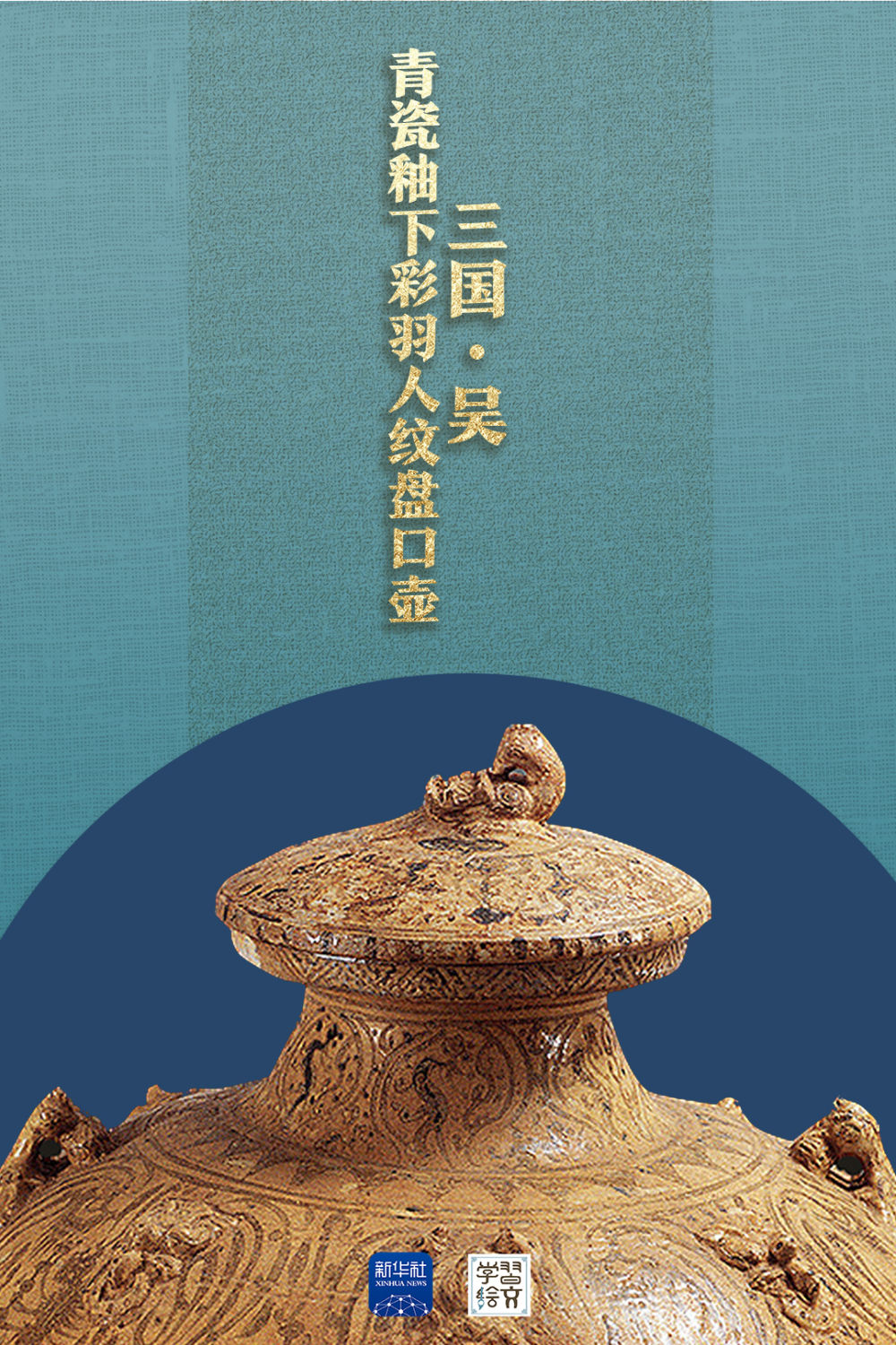 “這件藏于六朝博物館的青瓷釉下彩羽人紋盤口壺于1983年出土,精湛的釉下彩繪工藝,改變了人們對釉下彩工藝始于唐代的認(rèn)識,把我國釉下彩繪工藝出現(xiàn)的時(shí)間提前了近五百年?!彼窝嗾f。