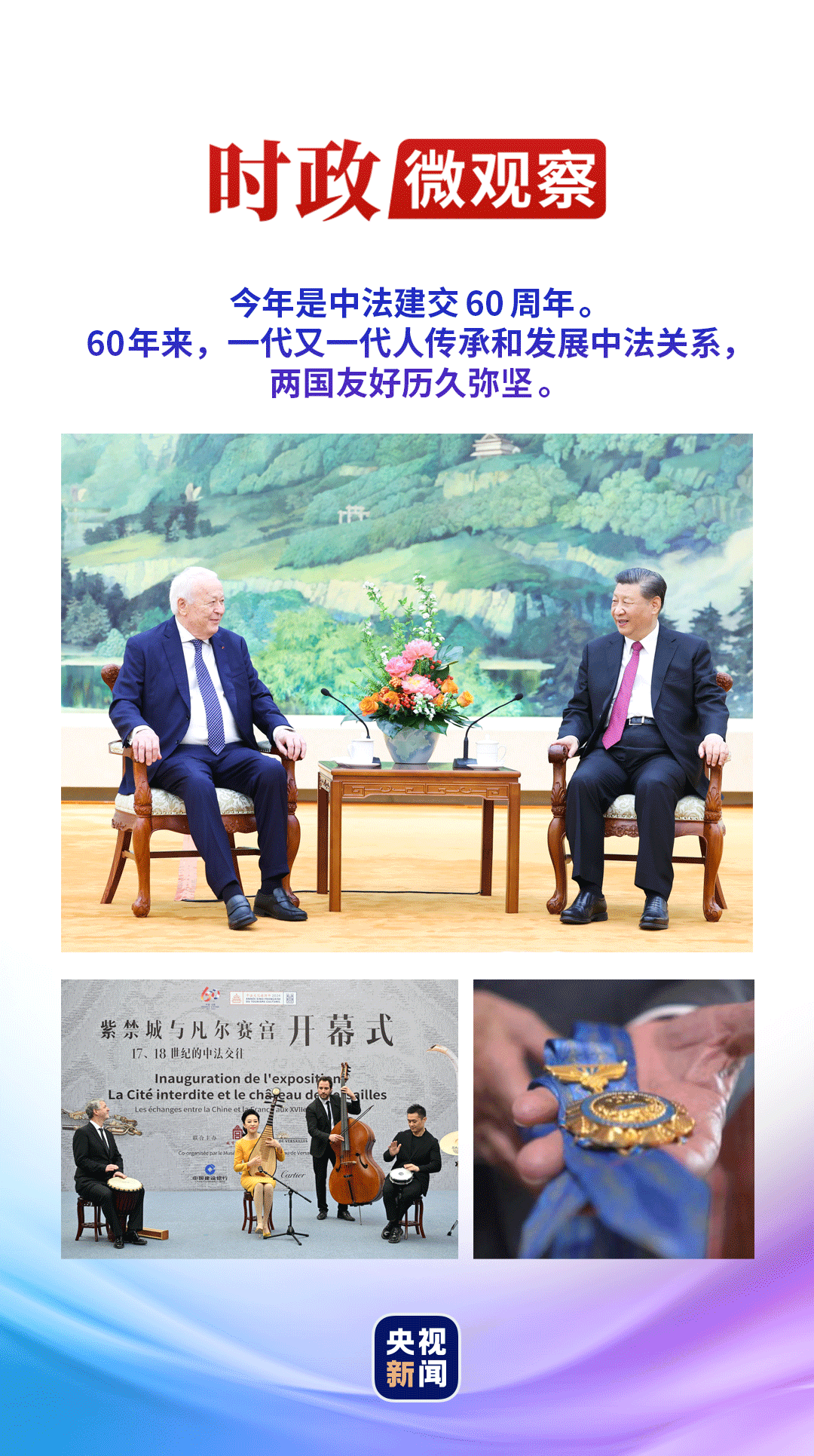 今年4月8日,再次會見中國人民這位老朋友,習(xí)近平主席撫今追昔:“60年來,一代又一代人傳承和發(fā)展中法關(guān)系,兩國友好歷久彌堅。中方珍視中法友誼,愿同法方進(jìn)一步加強高層交往,密切交流合作,推動中法關(guān)系邁上更高水平?!?/p>