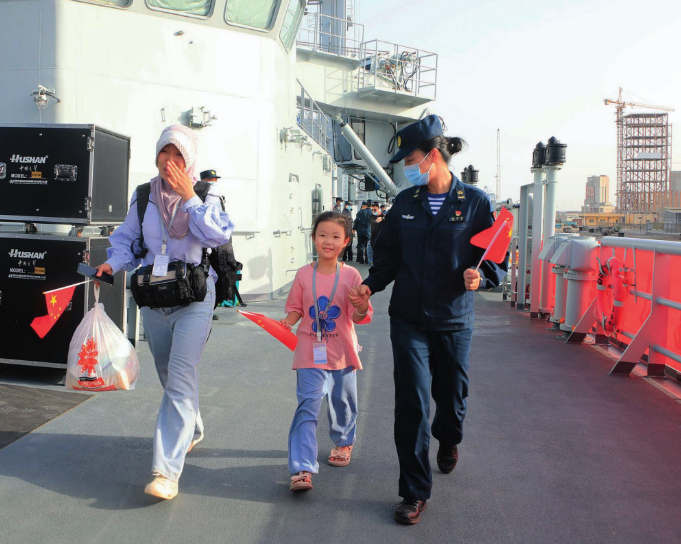 從中國(guó)海軍軍艦首次參與在人道主義危機(jī)中撤離平民行動(dòng)開始,就注重進(jìn)行國(guó)際人道主義救援。2015年,緊急趕赴也門,幫助除中國(guó)公民外的15個(gè)國(guó)家的279名外國(guó)公民安全撤離。2023年,緊急赴蘇丹撤僑,第二批撤離人員中包括221名巴基斯坦、巴西等國(guó)人員。