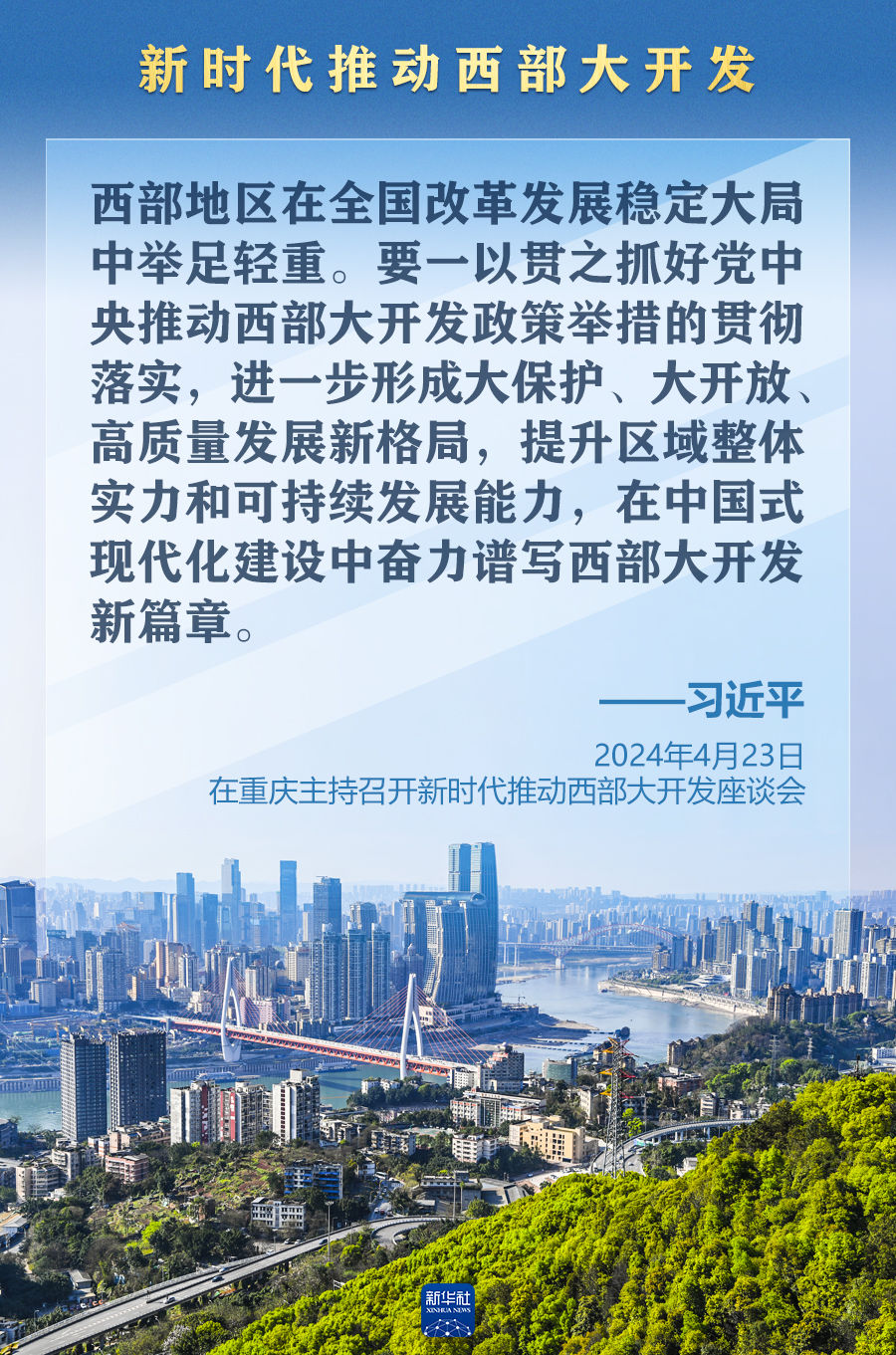 4月23日,習(xí)近平總書記在重慶主持召開新時代推動西部大開發(fā)座談會并發(fā)表重要講話。