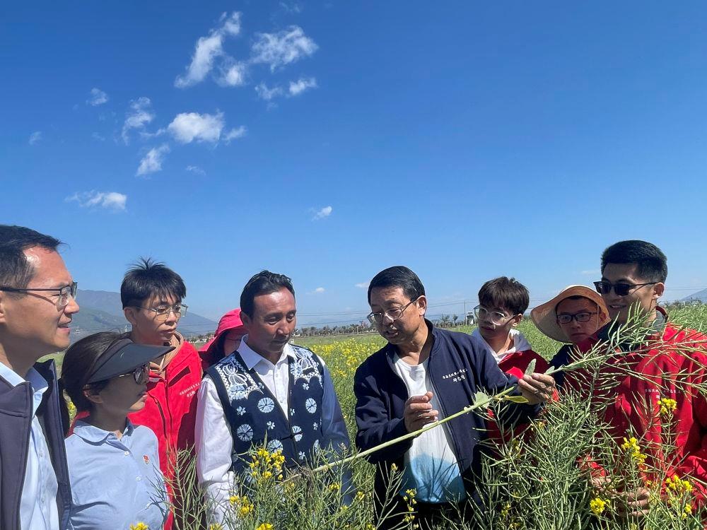 △中國(guó)農(nóng)業(yè)大學(xué)教授張福鎖(右四)帶領(lǐng)科技小院師生與農(nóng)戶交流種植心得。