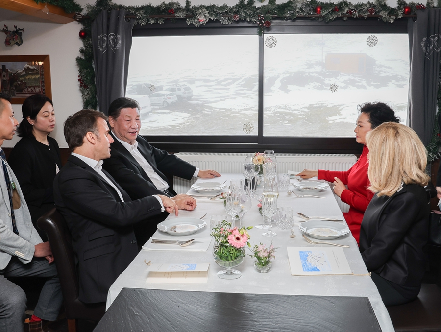 當(dāng)?shù)貢r(shí)間5月7日,應(yīng)法國總統(tǒng)馬克龍?zhí)貏e邀請,國家主席習(xí)近平乘專機(jī)來到法國西南部上比利牛斯省訪問。在圖爾馬萊山口“牧羊人驛站”,習(xí)近平和夫人彭麗媛同馬克龍和夫人布麗吉特憑窗而坐,在輕松愉快的氛圍中就一些重要問題進(jìn)行戰(zhàn)略溝通。新華社記者 姚大偉 攝